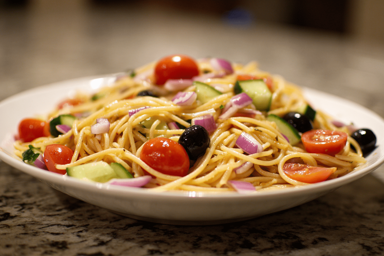 This Italian Spaghetti Salad is a light and flavorful twist on traditional pasta salad. It features tender spaghetti, crisp vegetables, olives, and a tangy Italian dressing, making it perfect for BBQs, picnics, or make-ahead meals.
