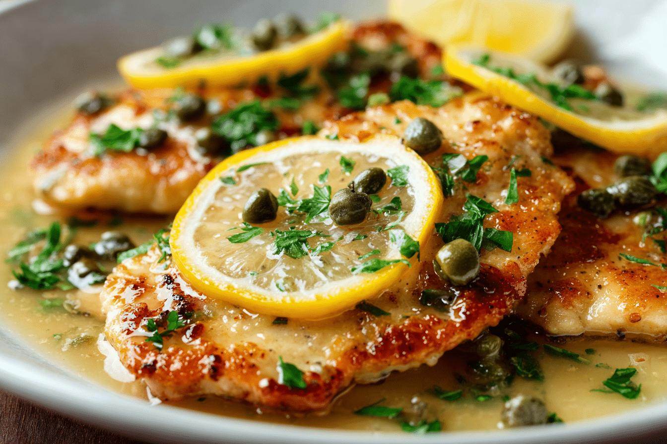 Lemon Chicken Piccata is a dish built on contrast. Tender chicken cutlets are lightly dredged and pan-seared until golden, then bathed in a silky lemon-butter sauce dotted with briny capers. The result is delicate yet deeply satisfying, with bright citrus cutting through the richness of the sauce in every bite.