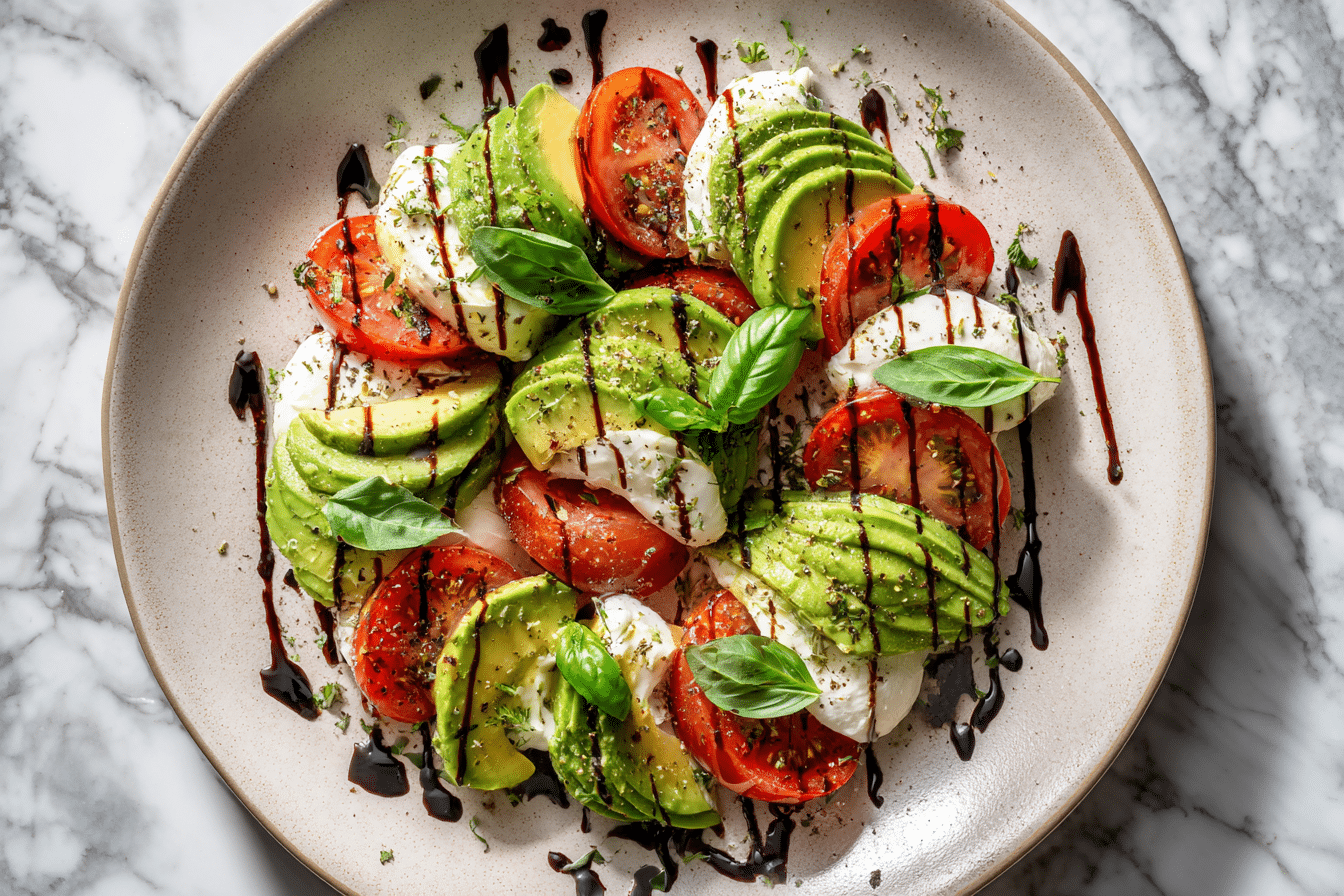 A light avocado caprese salad brings together creamy avocado, juicy tomatoes, soft mozzarella, and fresh basil in a clean, balanced dish. It is a refreshing twist on the classic Italian caprese, with avocado adding a smooth texture and extra richness.