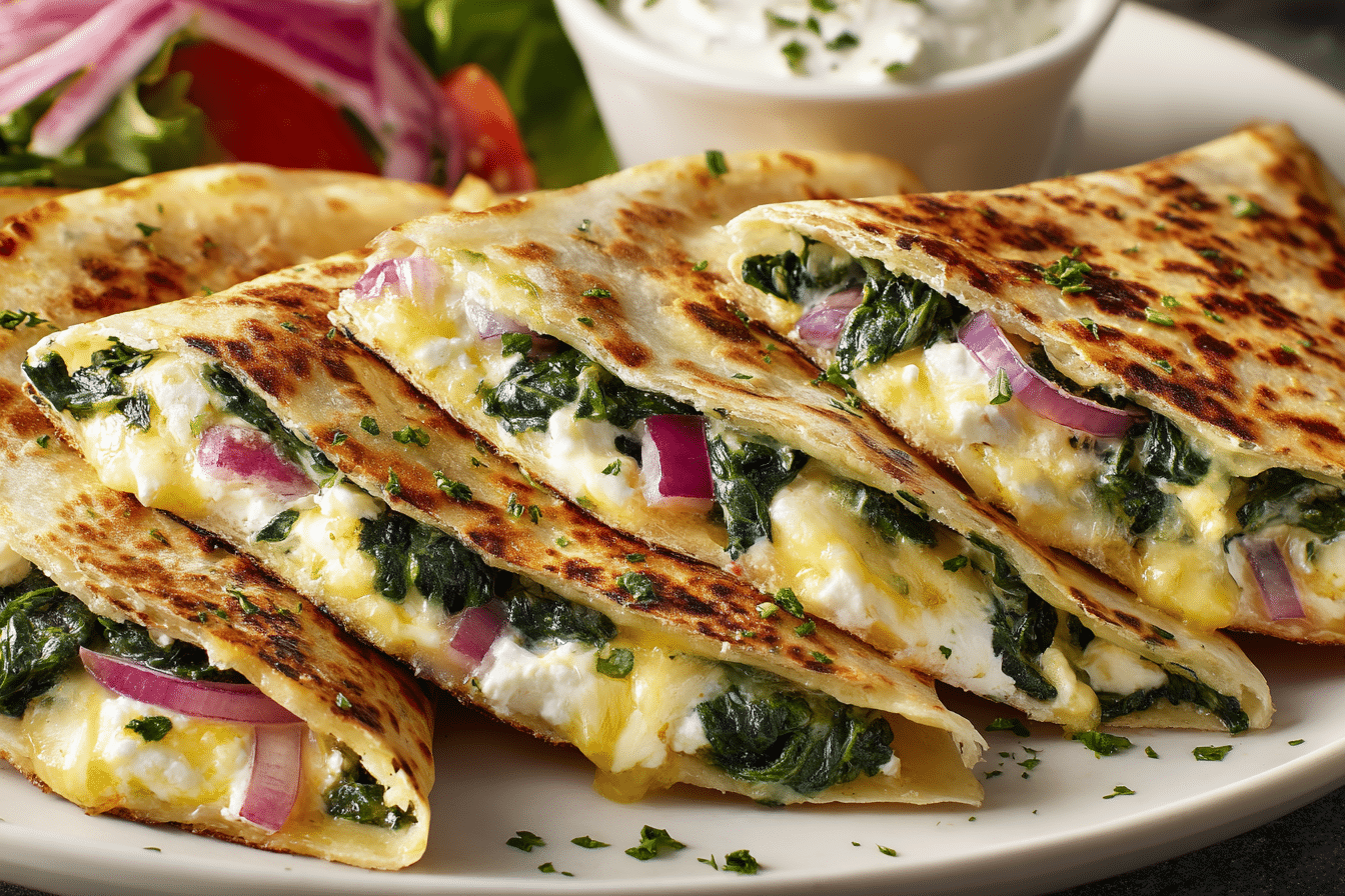 Mediterranean Quesadillas with Spinach, Feta, Mozzarella, and Red Onion: Flavorful Lunch Ideas