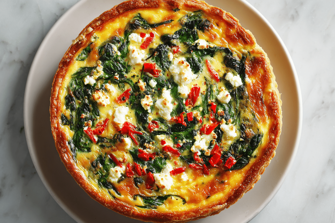 This Mediterranean-inspired quiche is packed with spinach, feta, and melty cheese in a fluffy egg custard. Perfect for brunch, breakfast, or a light lunch.