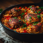 This One Pot Cajun Chicken and Rice is the kind of meal that turns ordinary weeknights into something bold and memorable. Juicy seared chicken, deeply seasoned with smoky Cajun spices, simmers in a bed of fluffy rice, onions, and peppers — all in a single pan. It’s rich, hearty, and ready in under 45 minutes.