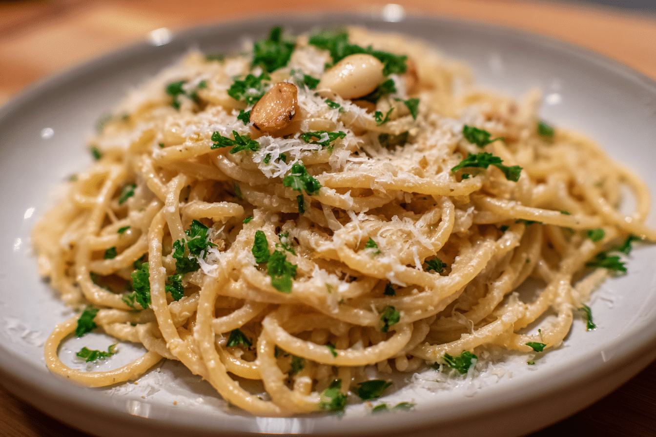Optional ingredients like parsley or spinach can be added for freshness and color. Spinach wilts directly into the hot pasta, while parsley is usually added at the end.