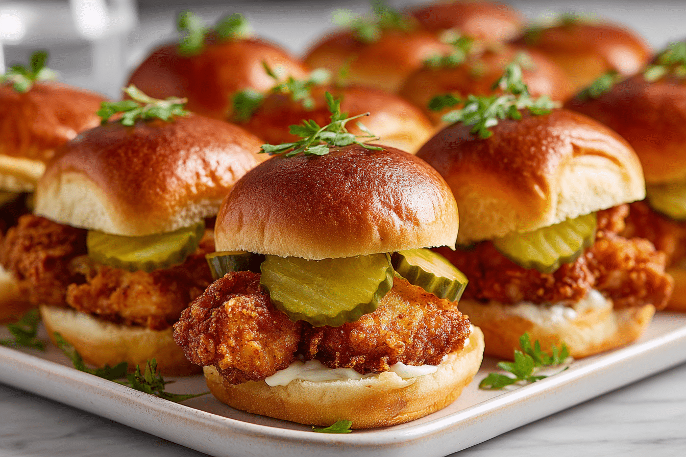 Pickle brine does more than just hint at tang; it infuses the chicken with deep, mouthwatering flavor and helps lock in moisture. Once fried, each piece is ultra-crispy on the outside and tender on the inside. Whether you’re hosting a weekend gathering or just spicing up a weeknight meal, these sliders offer an exciting, satisfying option with every bite.