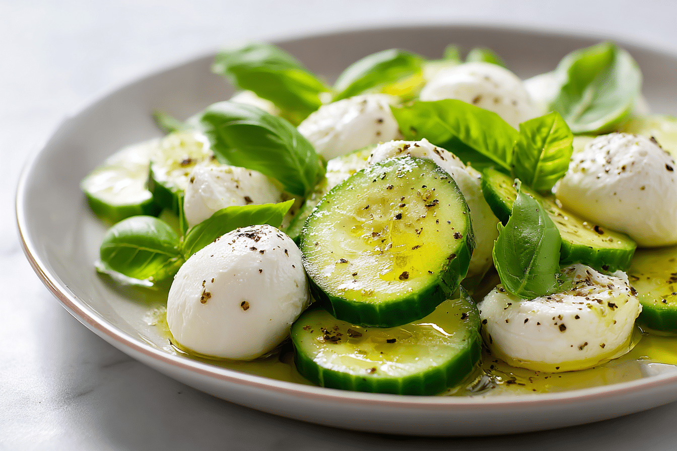 The combination of crunchy cucumbers and soft mozzarella with a simple dressing creates a balance of texture and flavor that’s both satisfying and wholesome.