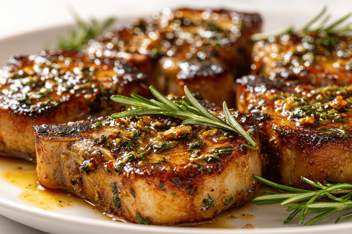 Rosemary garlic butter pork chops are a savory, aromatic dinner favorite that feels gourmet but comes together with simple ingredients in under 30 minutes. The combination of fresh rosemary, golden garlic, and rich, sizzling butter creates a mouthwatering pan sauce that coats each juicy pork chop in irresistible flavor.