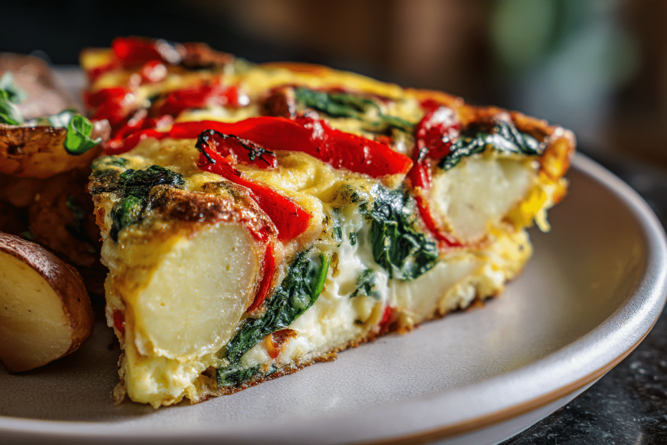 This frittata is a hearty, nutrient-packed, and versatile egg dish loaded with potatoes, vibrant red peppers, and fresh spinach. Perfect for breakfast, brunch, or even a light dinner, it’s easy to make and full of flavor.