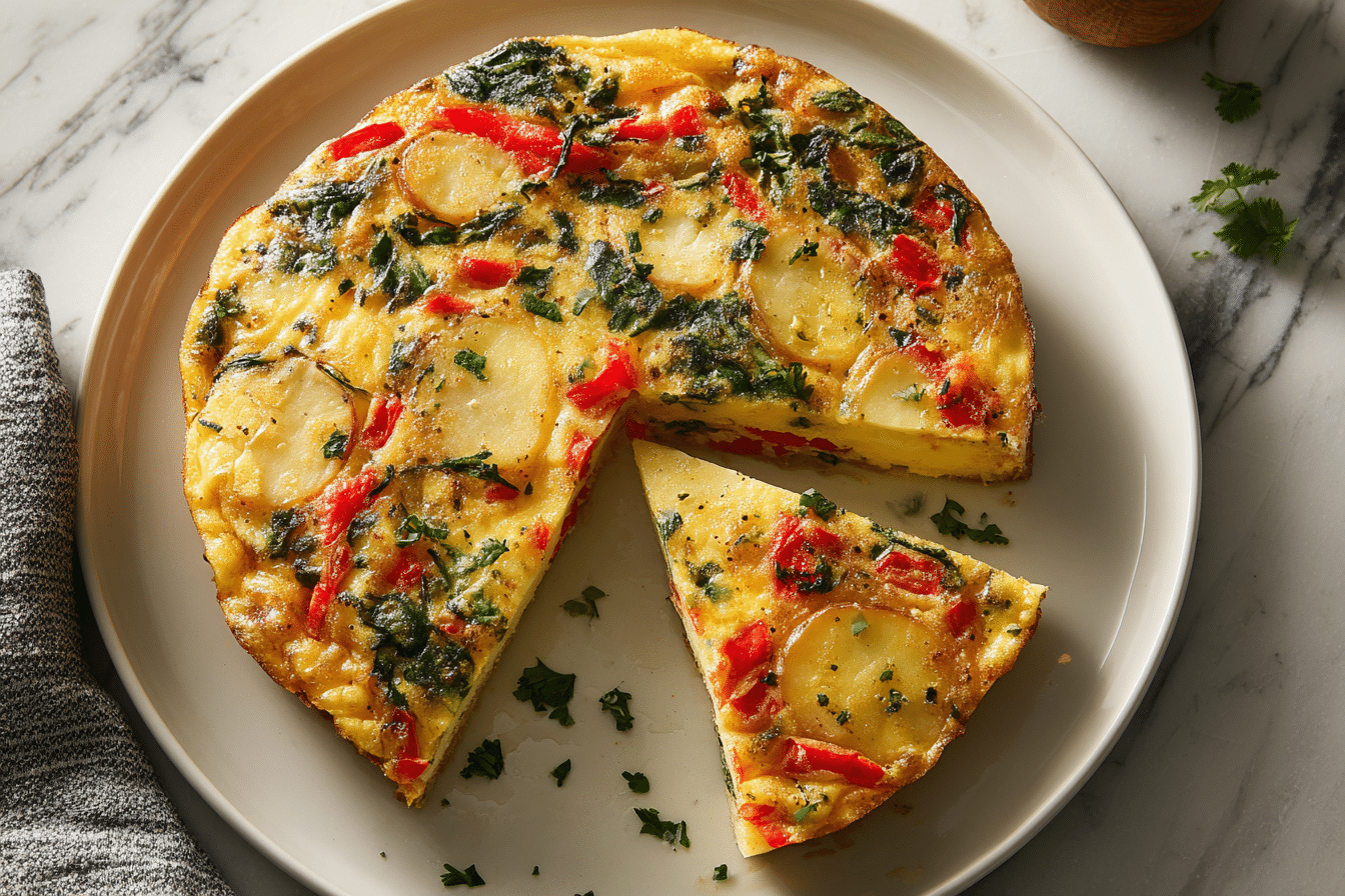 This frittata is a hearty, nutrient-packed, and versatile egg dish loaded with potatoes, vibrant red peppers, and fresh spinach. Perfect for breakfast, brunch, or even a light dinner, it’s easy to make and full of flavor.