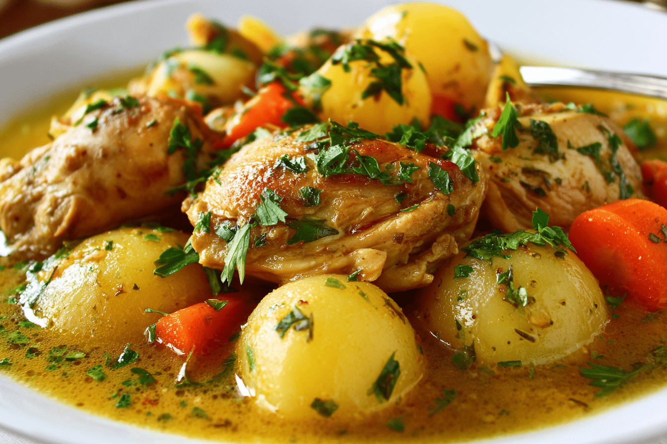 This stew is hearty, thick, and full of tender chicken, chunky vegetables, and savory herbs that simmer low and slow until everything melds into a rich, flavorful dish. Rooted in humble farmhouse traditions, chicken stew has long been a staple in kitchens across the globe — from rustic French country pots to classic American slow cooker favorites.