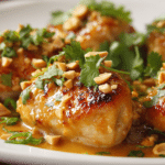 Thai Peanut Chicken is the kind of dish that makes you pause after the first bite. It’s cozy, aromatic, and loaded with flavor — a harmony of creamy, salty, sweet, and spicy notes that feel familiar yet exciting. Drawing inspiration from Thai cuisine’s love for balance and richness, this recipe blends nutty peanut butter with warm coconut milk, bright lime, and just enough heat to keep things interesting.