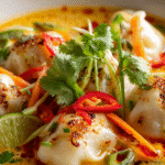 A cozy, flavor-packed Thai coconut curry soup filled with tender dumplings, fragrant herbs, and rich, creamy broth — perfect for chilly nights.