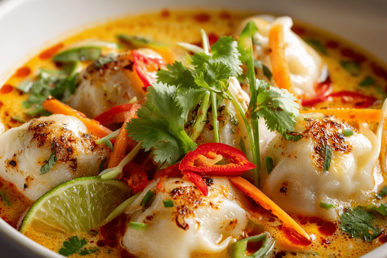 When the weather turns chilly, few meals are as comforting and flavorful as a bowl of Thai Coconut Curry Dumpling Soup. This soul-warming dish marries the creamy, aromatic depth of Thai red curry and coconut milk with the soft, chewy bite of dumplings — all in one luxurious spoonful.