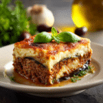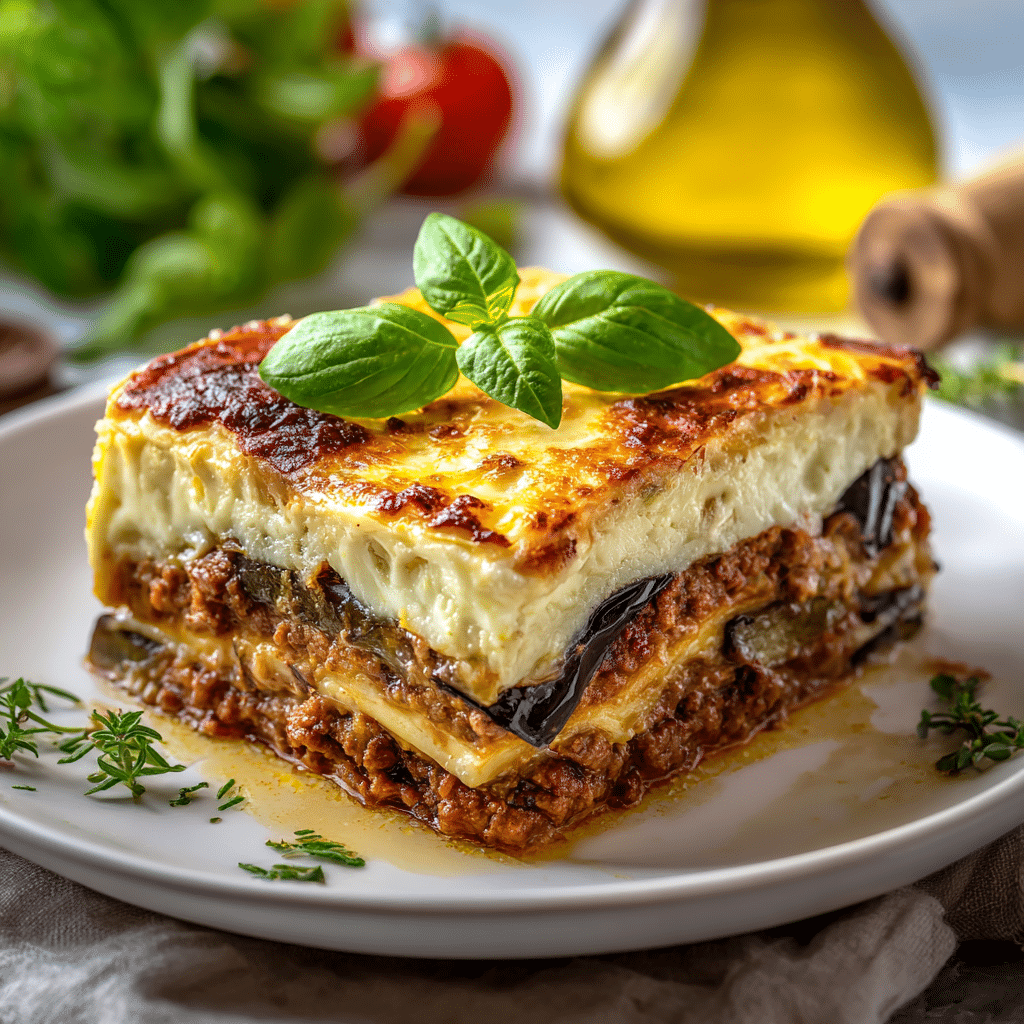 This traditional Greek moussaka is a hearty, layered casserole made with eggplant, spiced meat sauce, and creamy béchamel. Comforting, rich, and perfect for gatherings or Sunday dinner.
