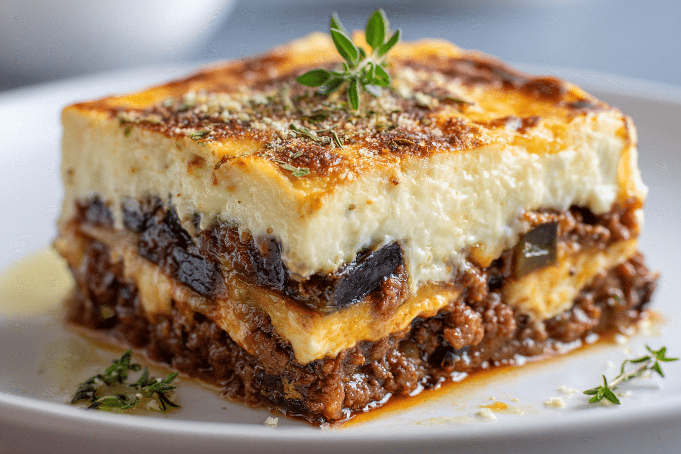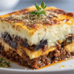 Chef’s note: Don’t skip resting time after baking. Hot moussaka will fall apart — letting it cool slightly ensures neat layers.