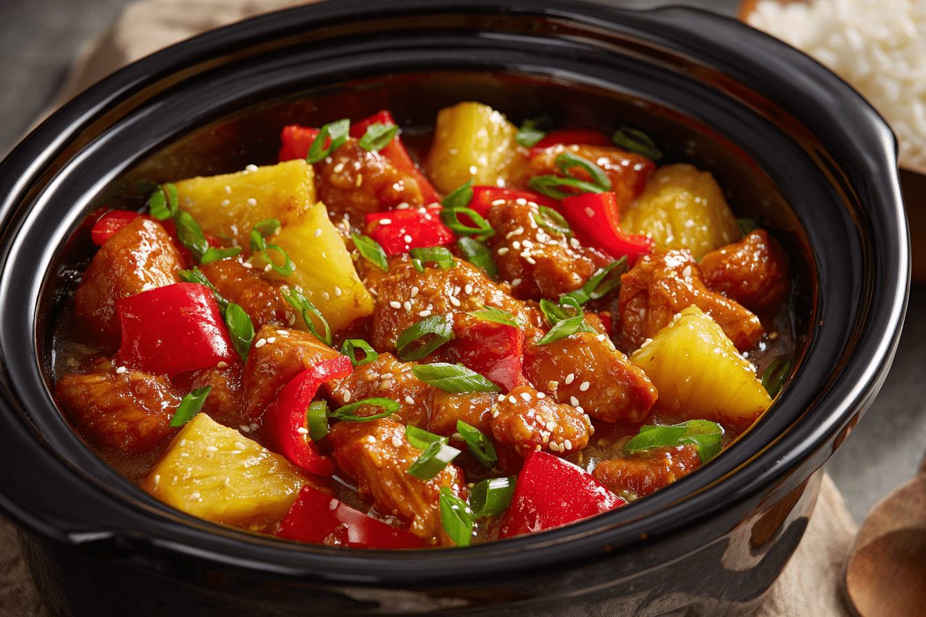 The combination of sweet pineapple and savory sauce has long been popular in Hawaiian-influenced cuisine, where tropical fruits frequently appear alongside meats. In this crock-pot version, the ingredients gently simmer together until the chicken becomes tender and infused with the fruity, savory sauce.