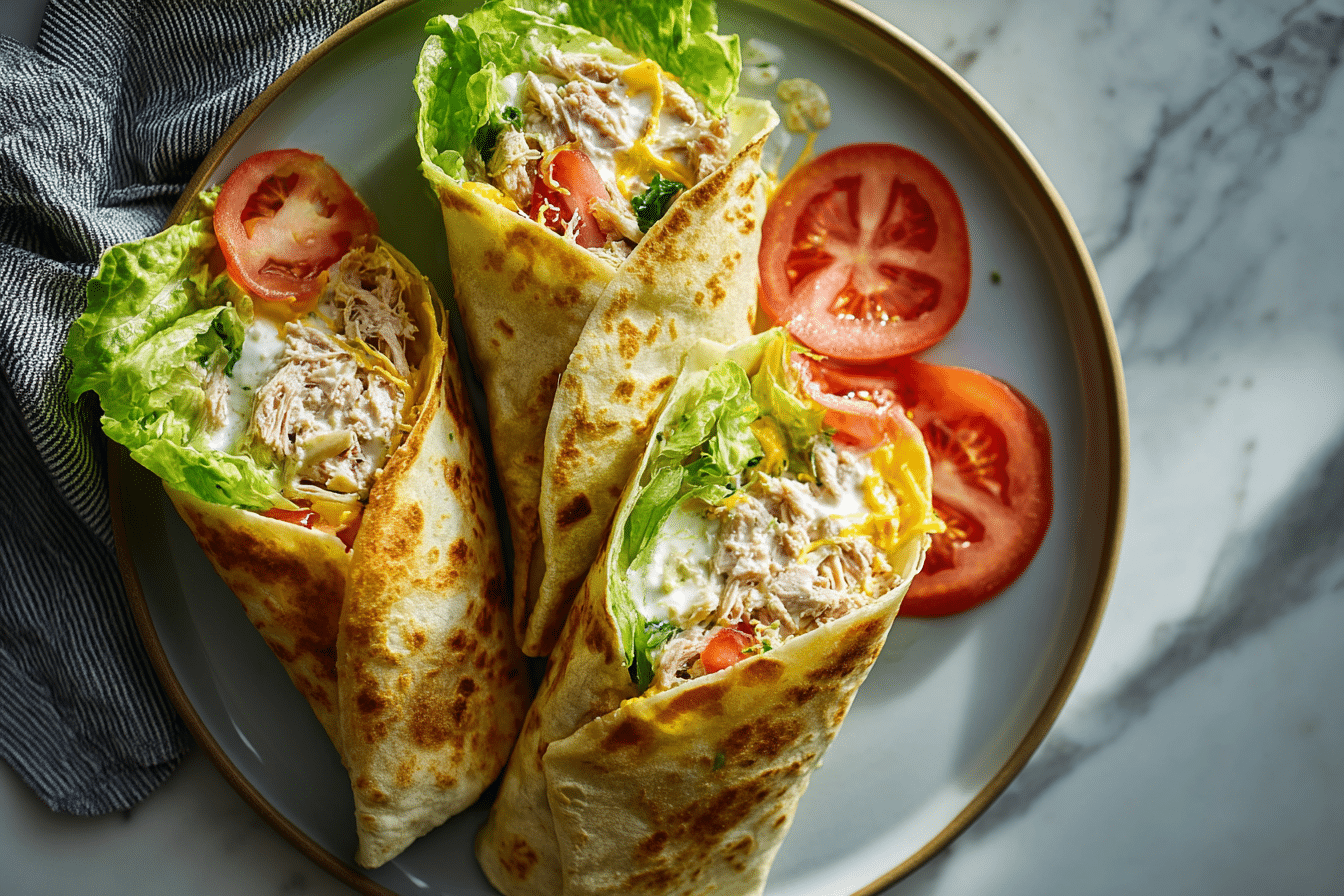 Tuna Melt Wrap is a warm tortilla filled with creamy tuna, melted cheese, and light seasoning, then toasted until golden and crisp.