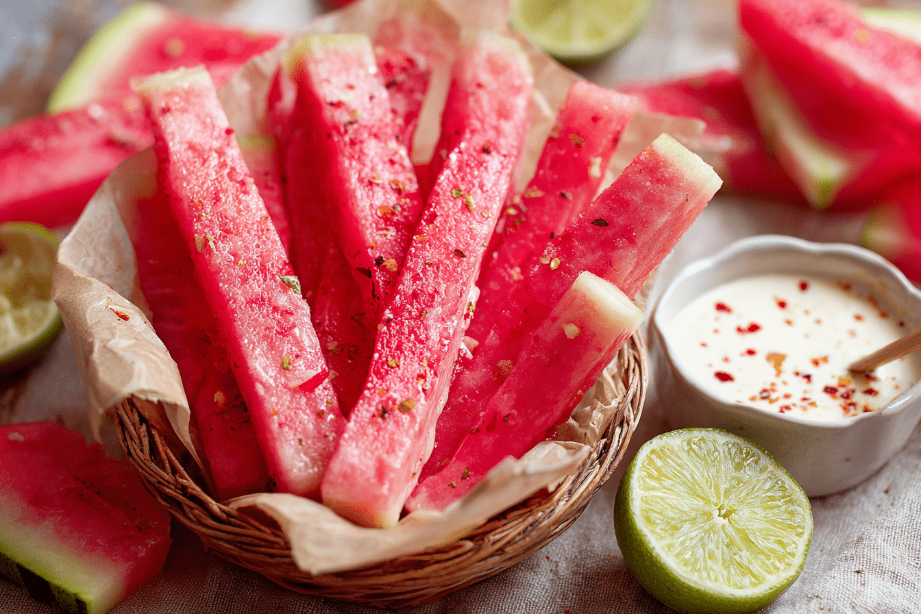 Watermelon Fries are a playful, refreshing snack that transforms a simple fruit into a fun summer treat. With juicy watermelon sticks and a creamy dip, they’re perfect for hot days, parties, or healthy snacking.